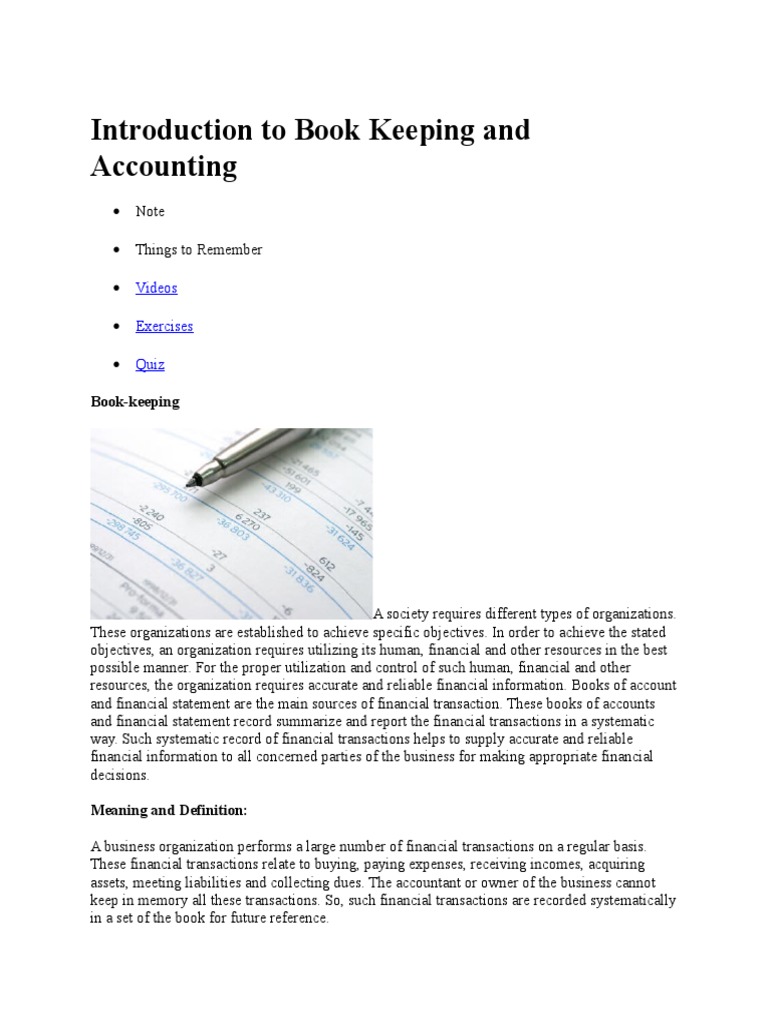 Introduction to Book Keeping and