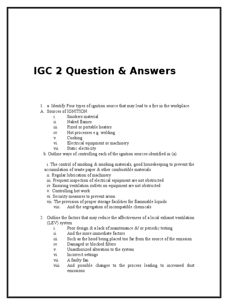 b. Outline ways of controlling each of the ignition sources identified in (a).