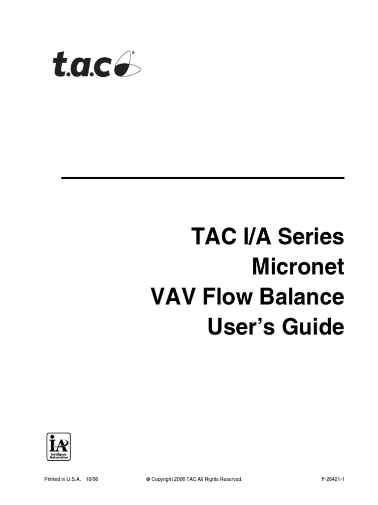 Distributed, manufactured, and sold by TAC. I/A SERIES trademarks are owned by