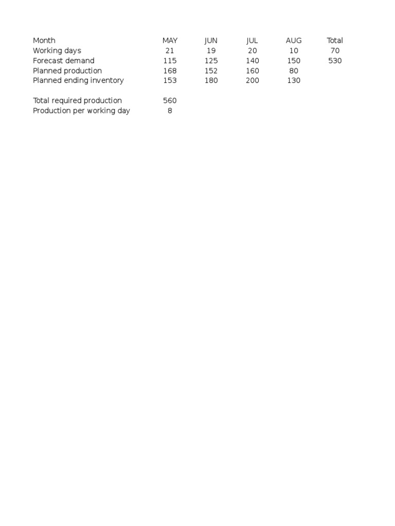 The Mesa Table Company has projected the following demand for its dining room table line. Produce a