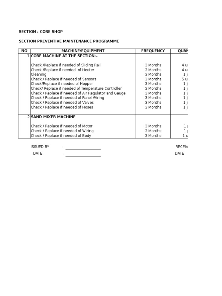 SECTION PREVENTIVE MAINTENANCE PROGRAMME