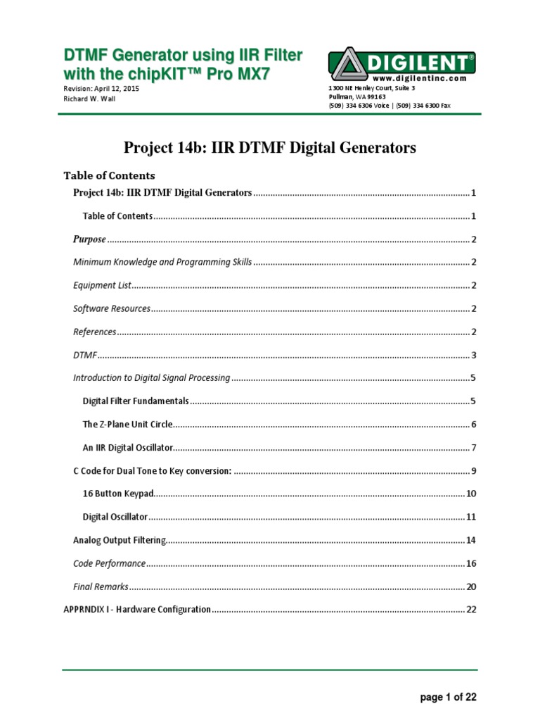 Project 14b: IIR DTMF Digital Generators ......................................................................................... 1