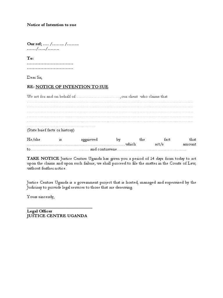 TAKE NOTICE Justice Centres Uganda has given you a period of 14 days from today to act