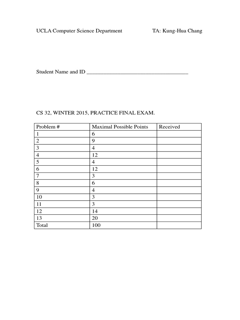 CS 32, WINTER 2015, PRACTICE FINAL EXAM.