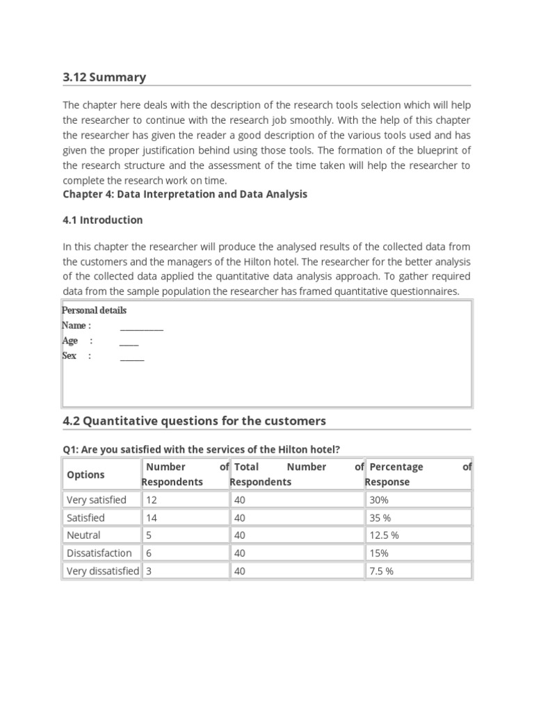 the customers and the managers of the Hilton hotel. The researcher for the better analysis