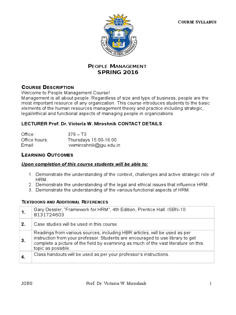Gary Dessler, Framework for HRM, 4th Edition, Prentice Hall, ISBN-10: 8131724603