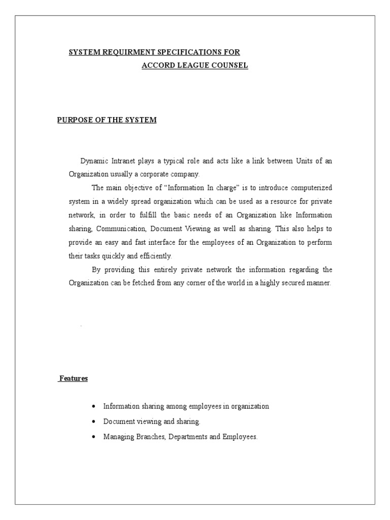 SYSTEM REQUIRMENT SPECIFICATIONS FOR