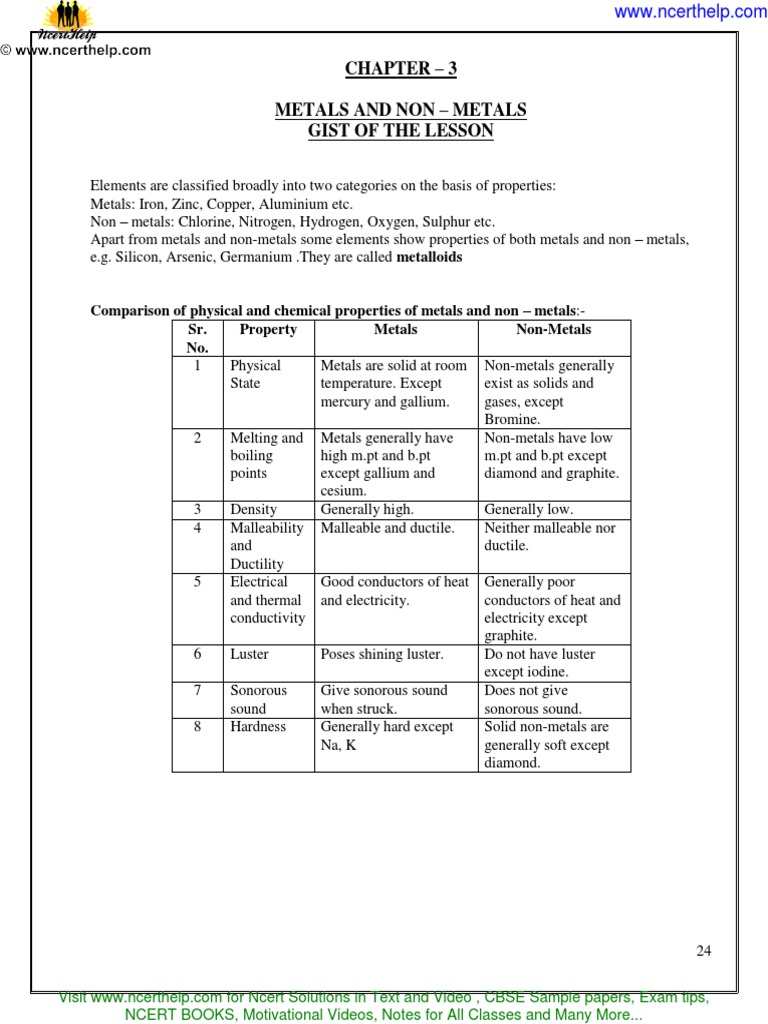 Comparison of Chemical Properties of Metals and Non-metals:1