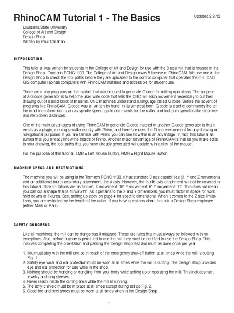 Design Shop - Tormach PCNC 1100. The College of Art and Design owns 5 license of RhinoCAM. We use one in the
