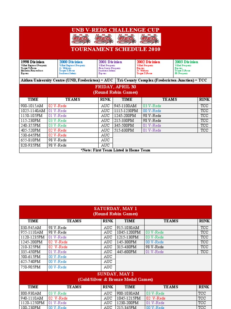 900-1015AM 02 V-Reds AUC 945-1100AM 03 V-Reds TCC