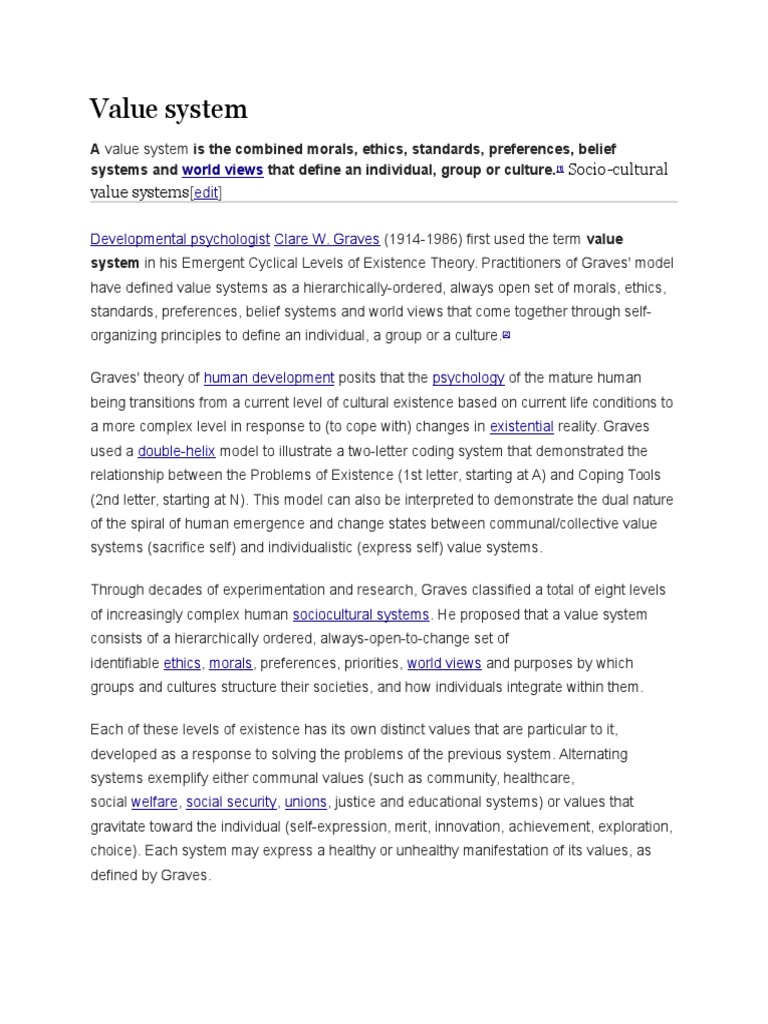 Developmental psychologist Clare W. Graves (1914-1986) first used the term value