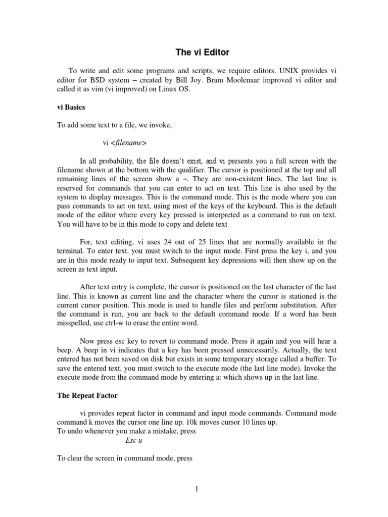 To write and edit some programs and scripts, we require editors. UNIX provides vi