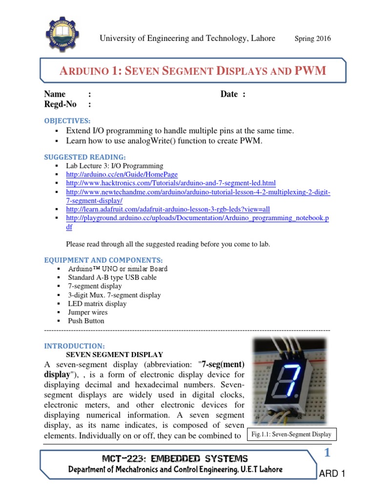 ARDUINO 1: SEVEN SEGMENT DISPLAYS AND PWM