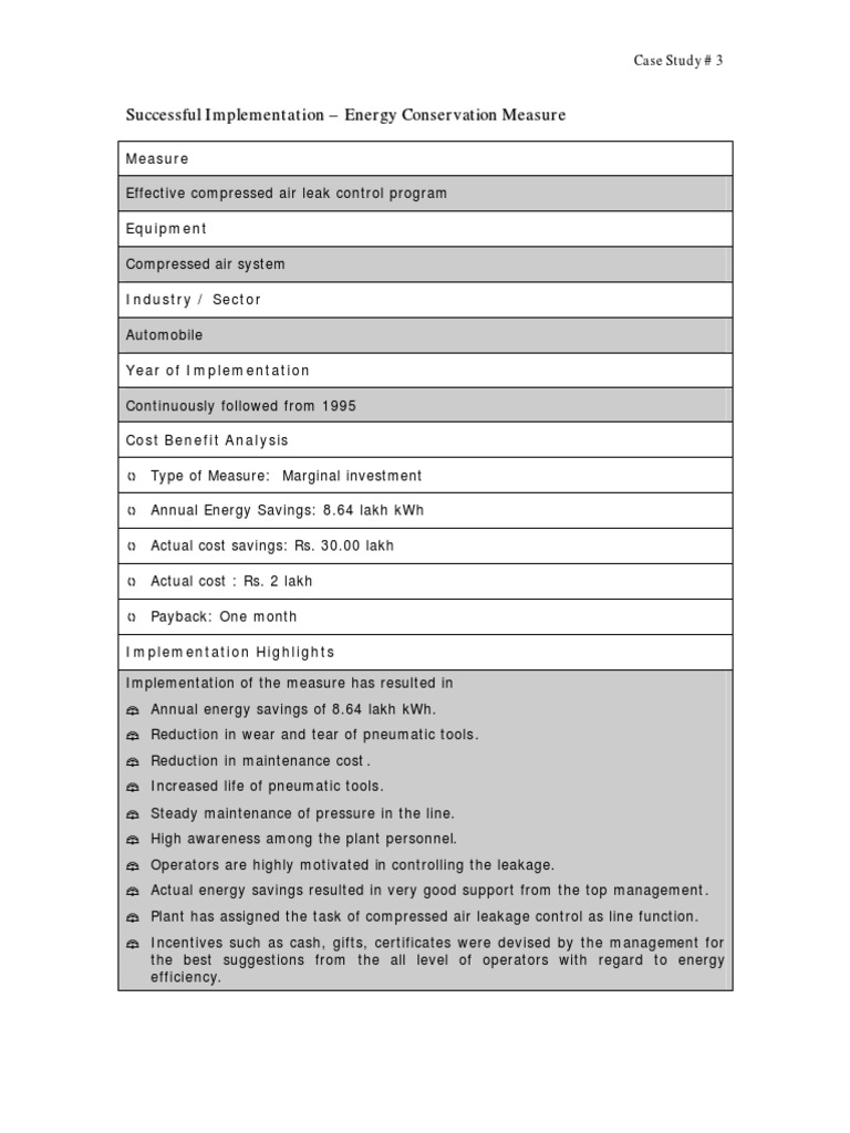 Successful I mplement at ion Energy Conserv at ion Measure