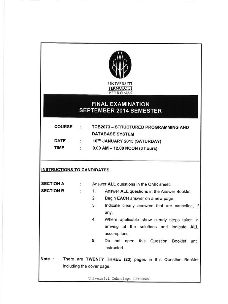 There are TWENTY THREE (23) pages in this euestion Booktet