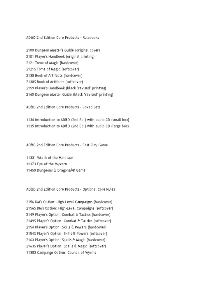 AD&D 2nd Edition Core Products - Player Reference Guide