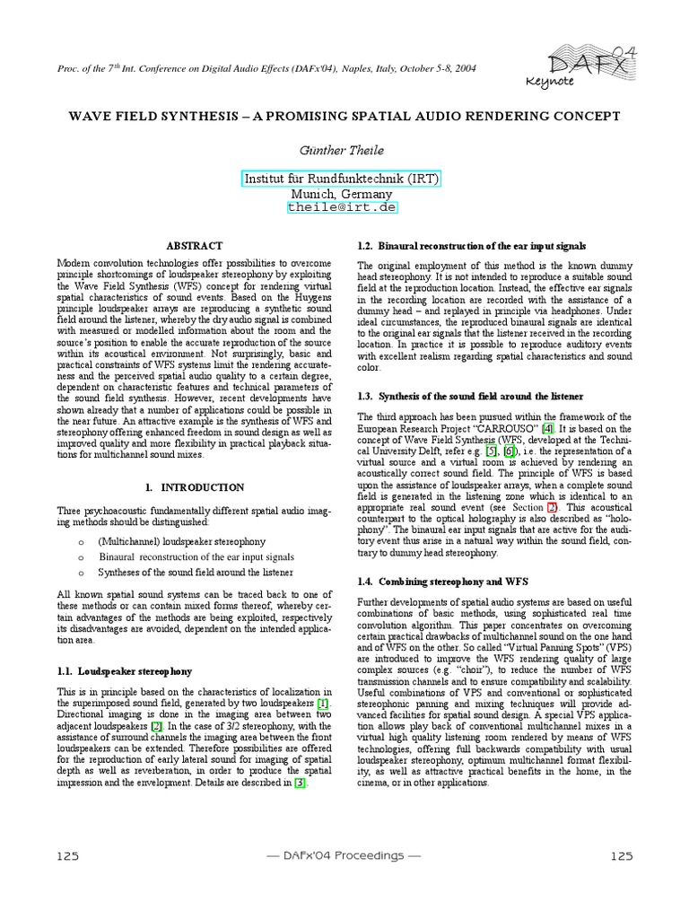 [1] G. Theile, On the localisation in the superimposed soundfield, Ph.D. Thesis, Techn. University Berlin, 1980. Online at