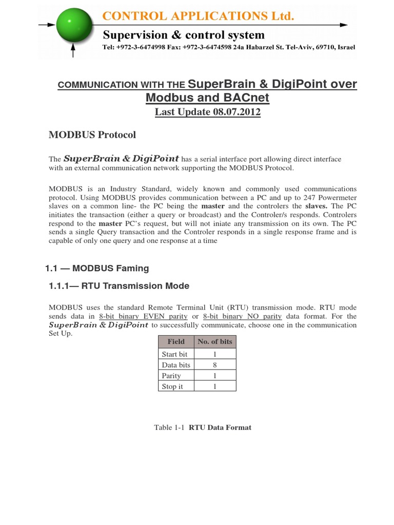 protocol. Using MODBUS provides communication between a PC and up to 247 Powermeter