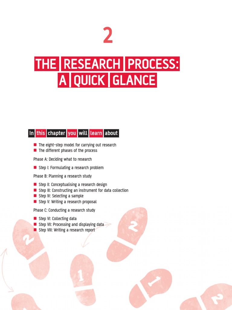 The eight steps cover the complete spectrum of a research endeavour, from problem formulation through to writing a research report. The steps are operational in