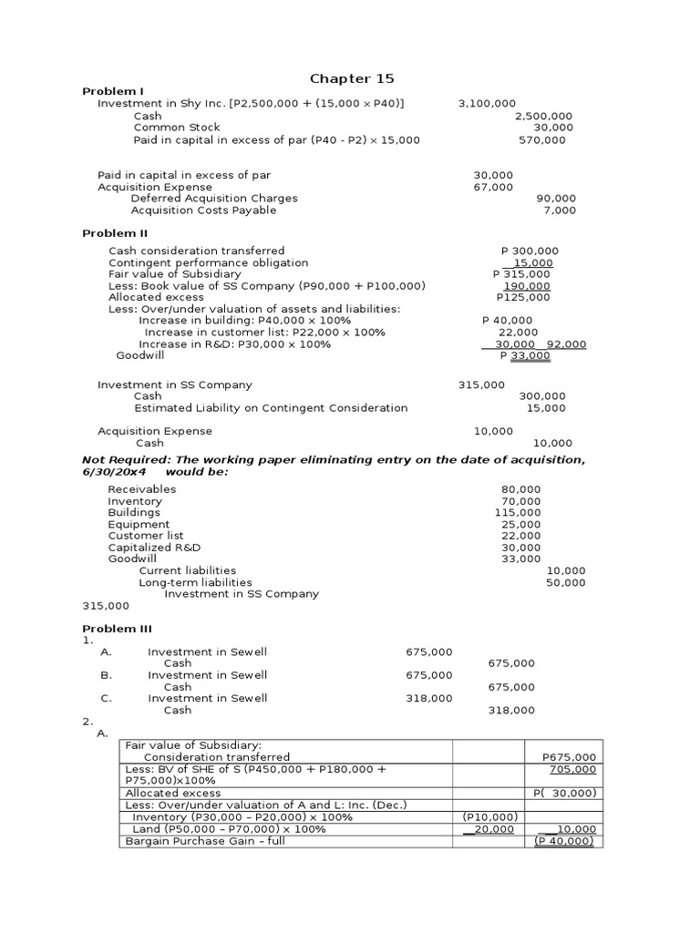 Not Required: The working paper eliminating entry on the date of acquisition,