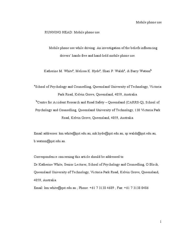 Mobile phone, Driving, Psychology, Beliefs, Australia