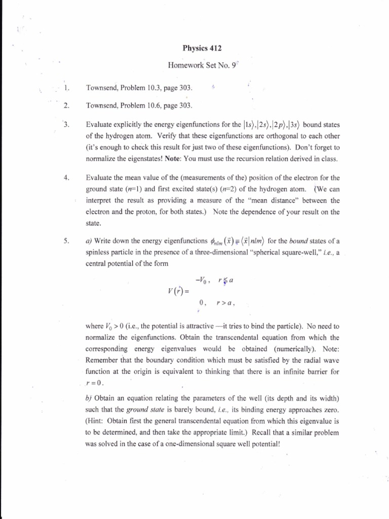a) Wite down the energy eigenfuncti ons Qn1.(;) (; I nlml for the bound states of a