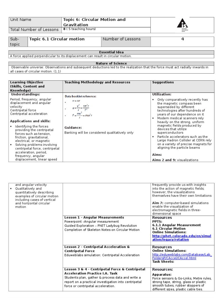 Lesson 3 & 4 Centripetal Force & Centripetal