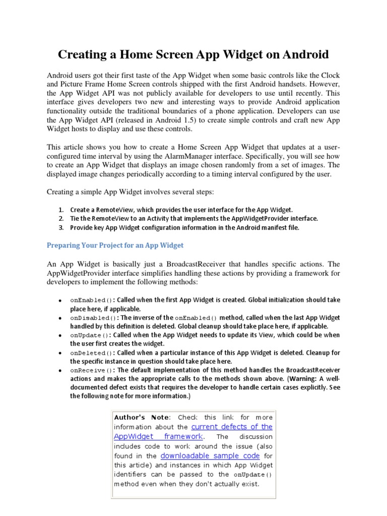 This article shows you how to create a Home Screen App Widget that updates at a user-