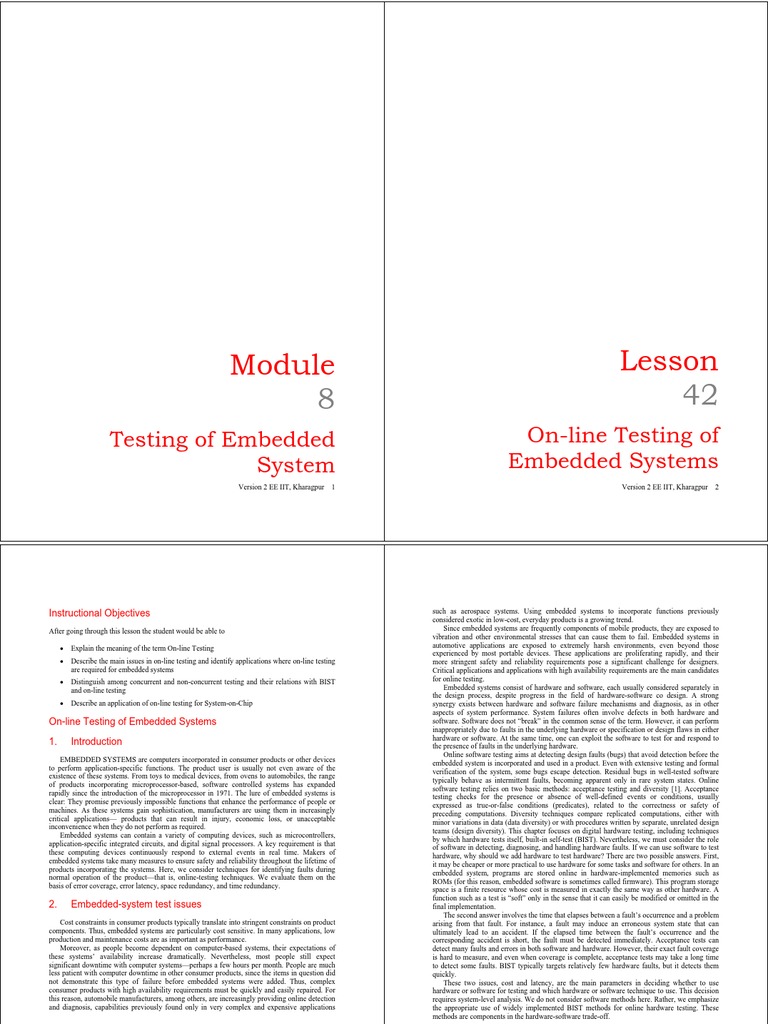 and on-line testing Embedded systems consist of hardware and software, each usually considered separately in