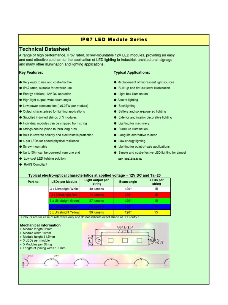 Module ingress protection rating is IP67 making them suitable for exterior use. Modules