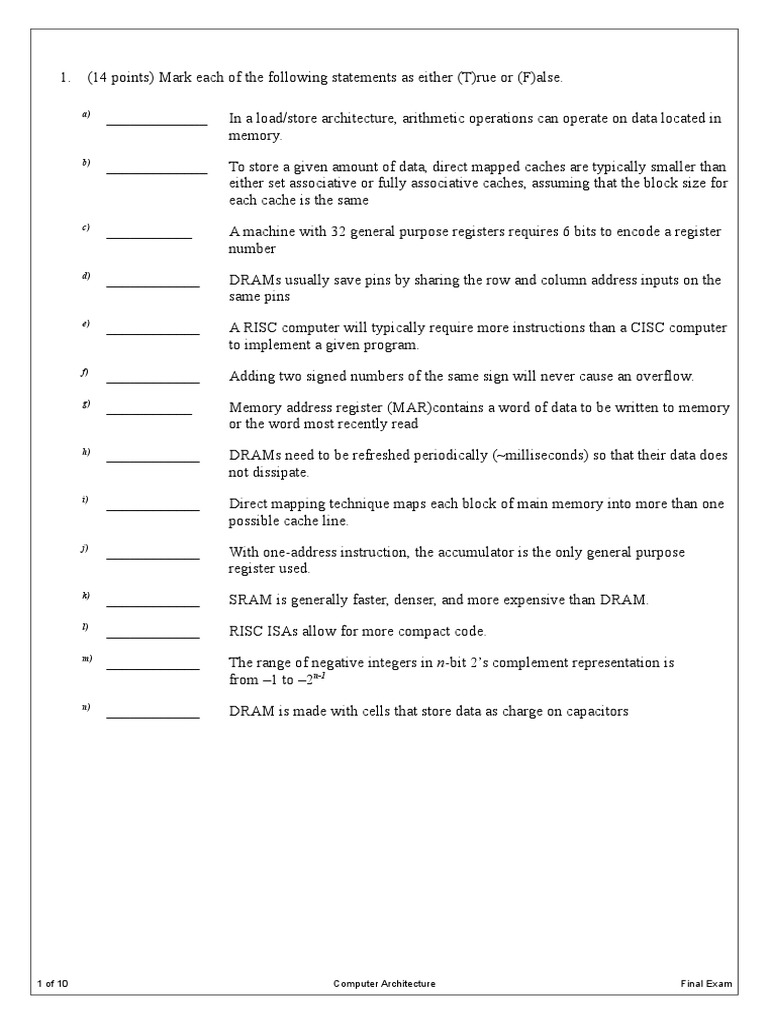 (14 points) Mark each of the following statements as either (T)rue or (F)alse.
