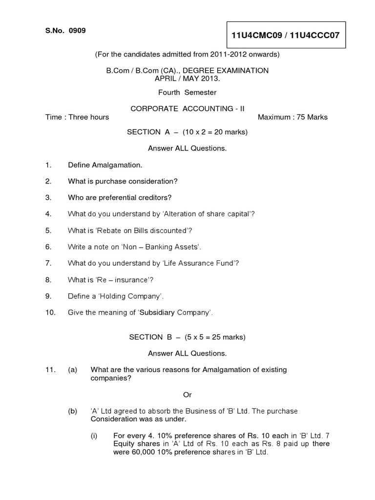 B.Com / B.Com (CA)., DEGREE EXAMINATION