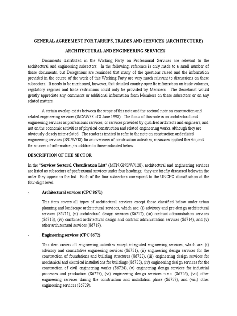 accountancy and legal services, architectural and engineering services appear to be subject to fewer