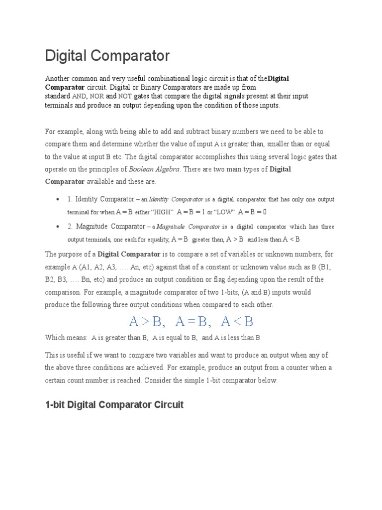 to the value at input B etc. The digital comparator accomplishes this using several logic gates that