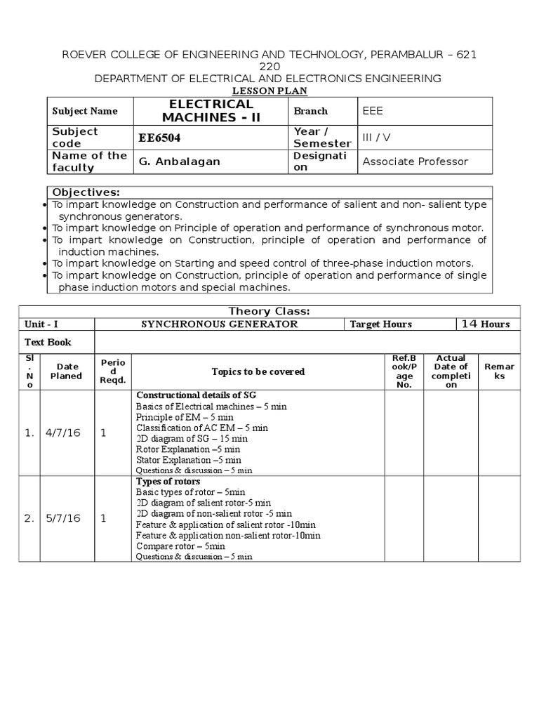 To impart knowledge on Principle of operation and performance of synchronous motor.