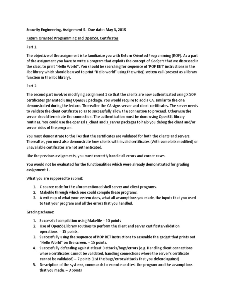The objective of the assignment is to familiarize you with Return Oriented Programming (ROP). As a part