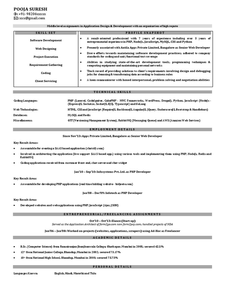 entrepreneurial experience in PHP, NodeJs, JavaScript, MySQL, CSS and Python