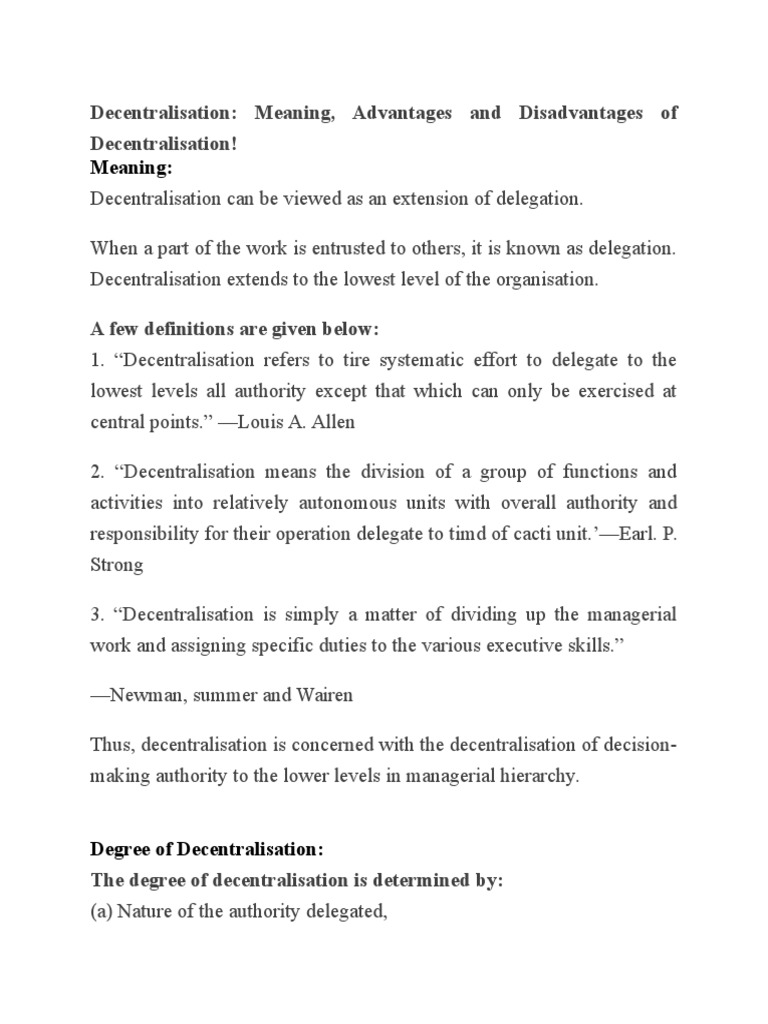 Decentralisation: Meaning, Advantages and Disadvantages of