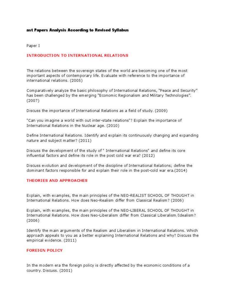 Comparatively analyze the basic philosophy of International Relations, Peace and Security
