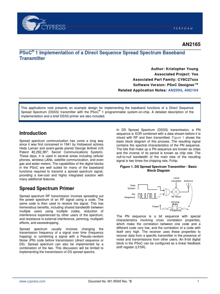 Spread Spectrum (DSSS) transmitter with the PSoC 1 programmable system-on-chip. A detailed description of the