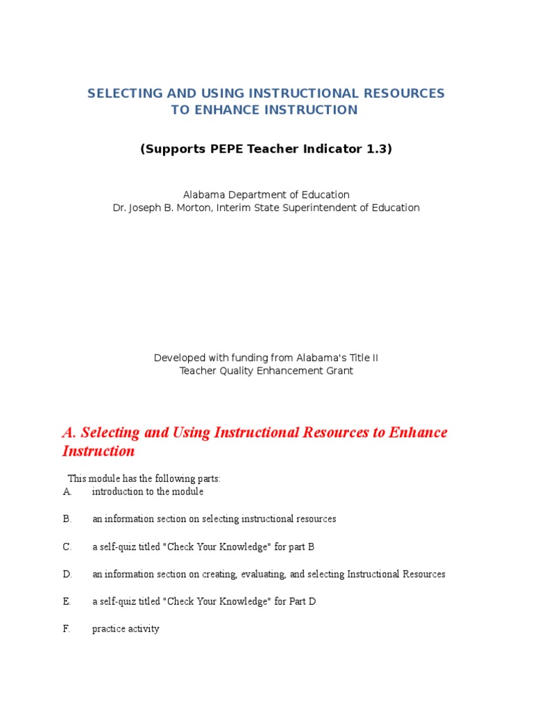 Locate, evaluate, and select appropriate instructional resources to complement what you are