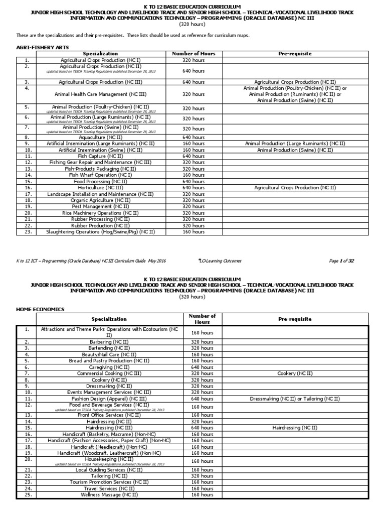K to 12 ICT Programming (Oracle Database) NC III Curriculum Guide May 2016