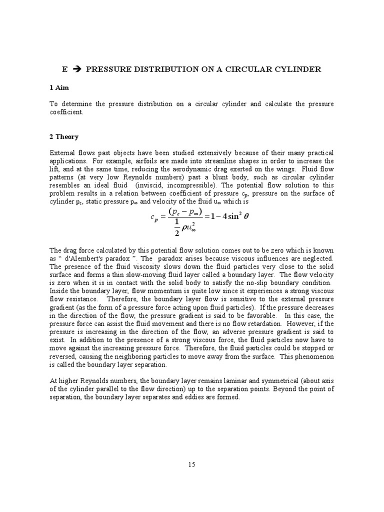 E PRESSURE DISTRIBUTION ON A CIRCULAR CYLINDER