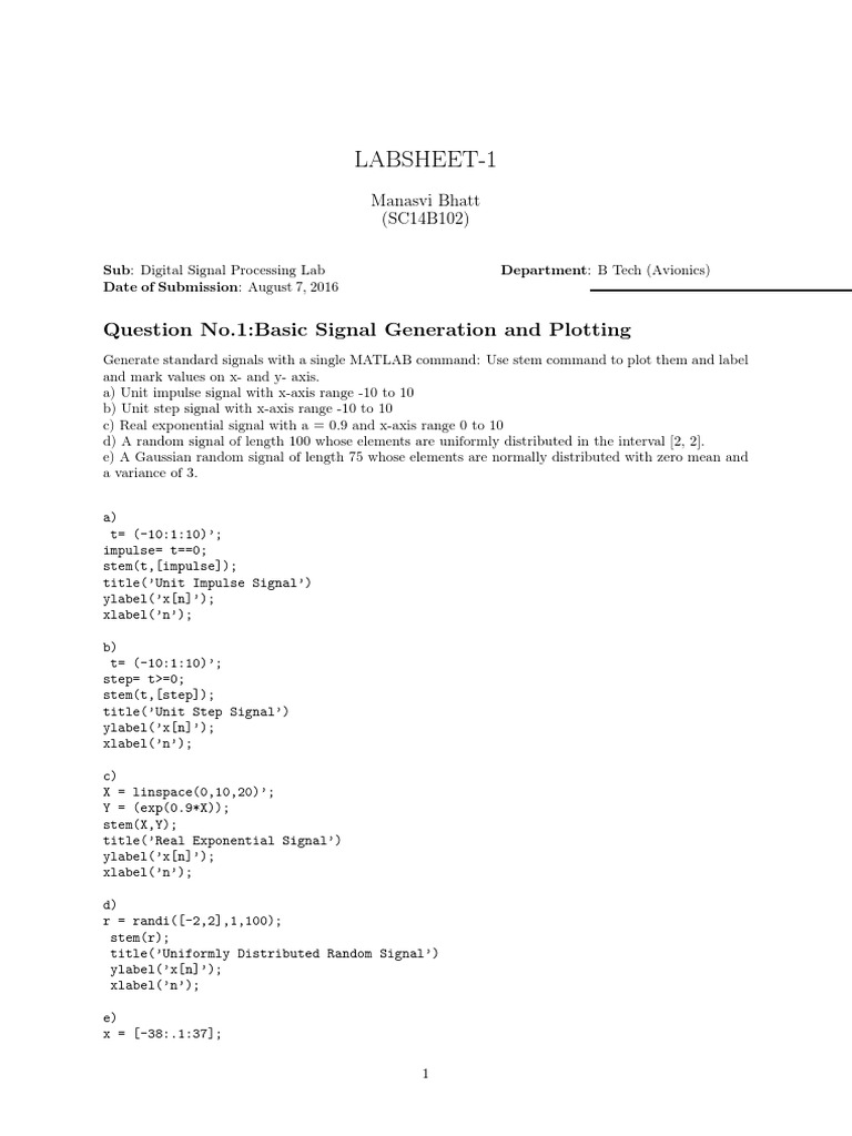 Inference:Different signals were generated using normal multiplication and plotted by using function stem. For