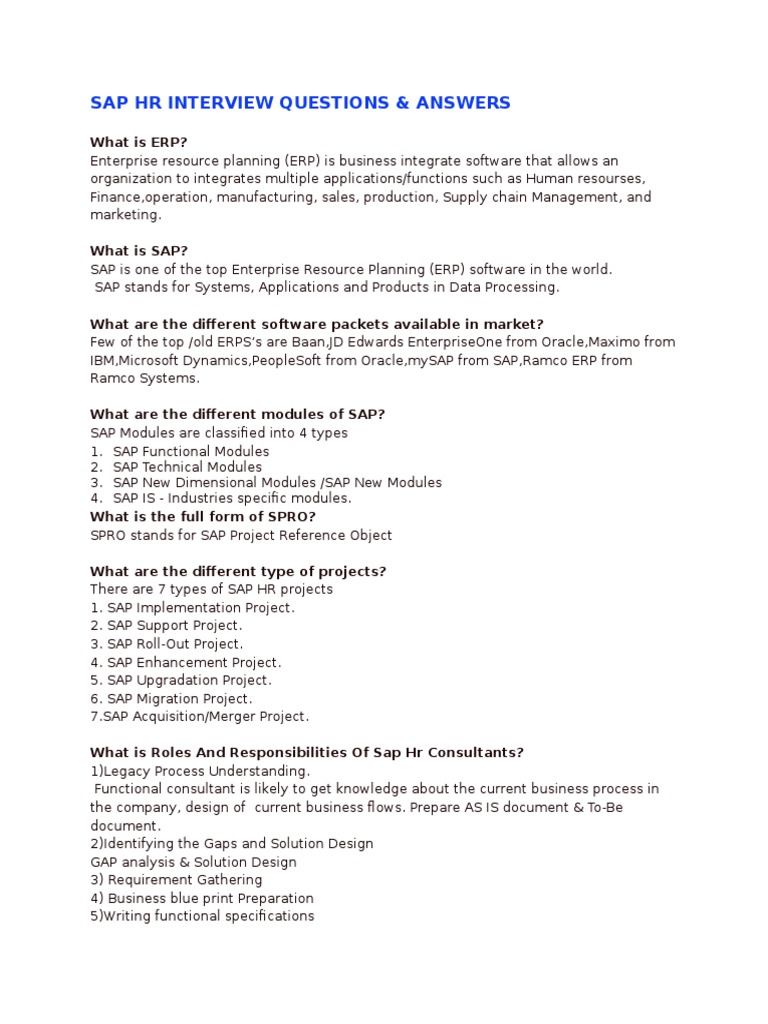 SAP HR INTERVIEW QUESTIONS & ANSWERS