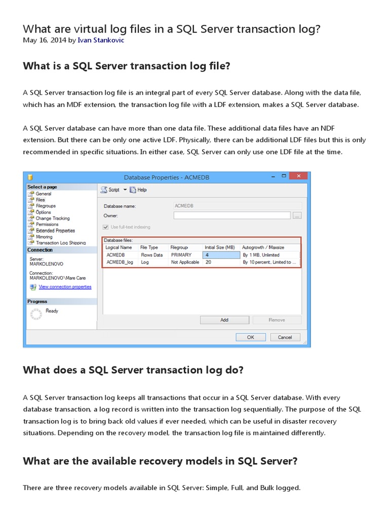 A SQL Server transaction log file is an integral part of every SQL Server database. Along with the data file,