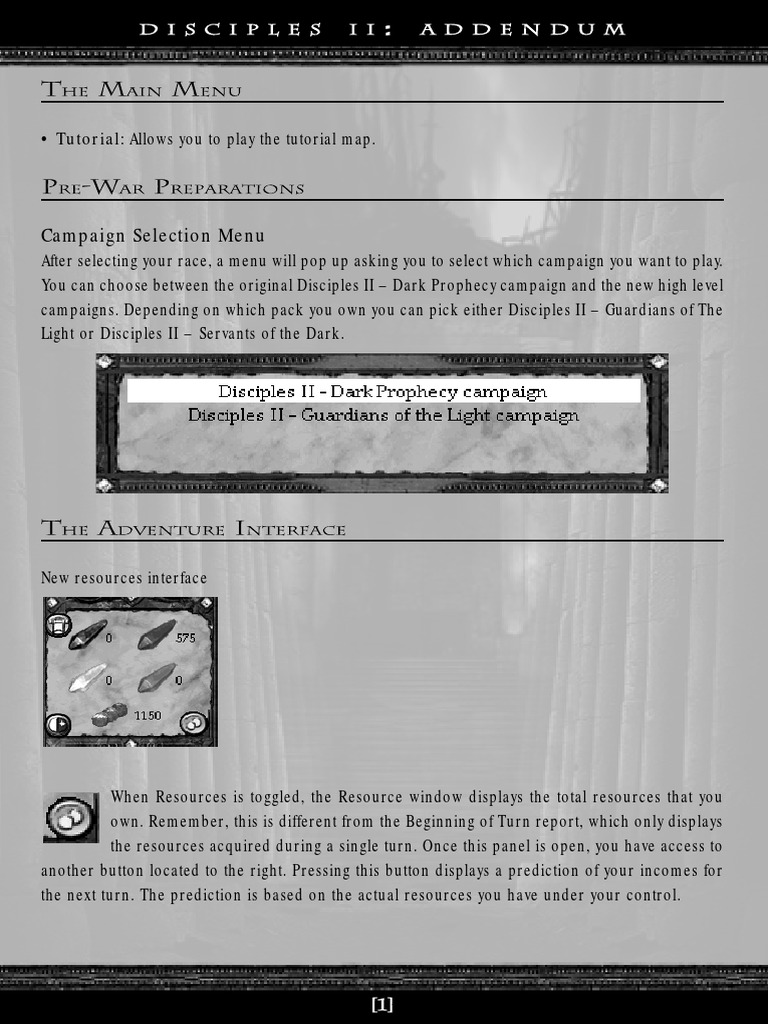 campaigns. Depending on which pack you own you can pick either Disciples II Guardians of The