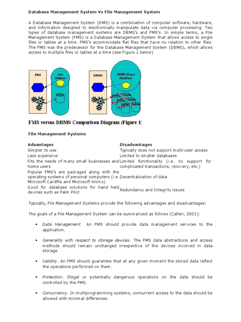 The goals of a File Management System can be summarized as follows (Calleri, 2001):