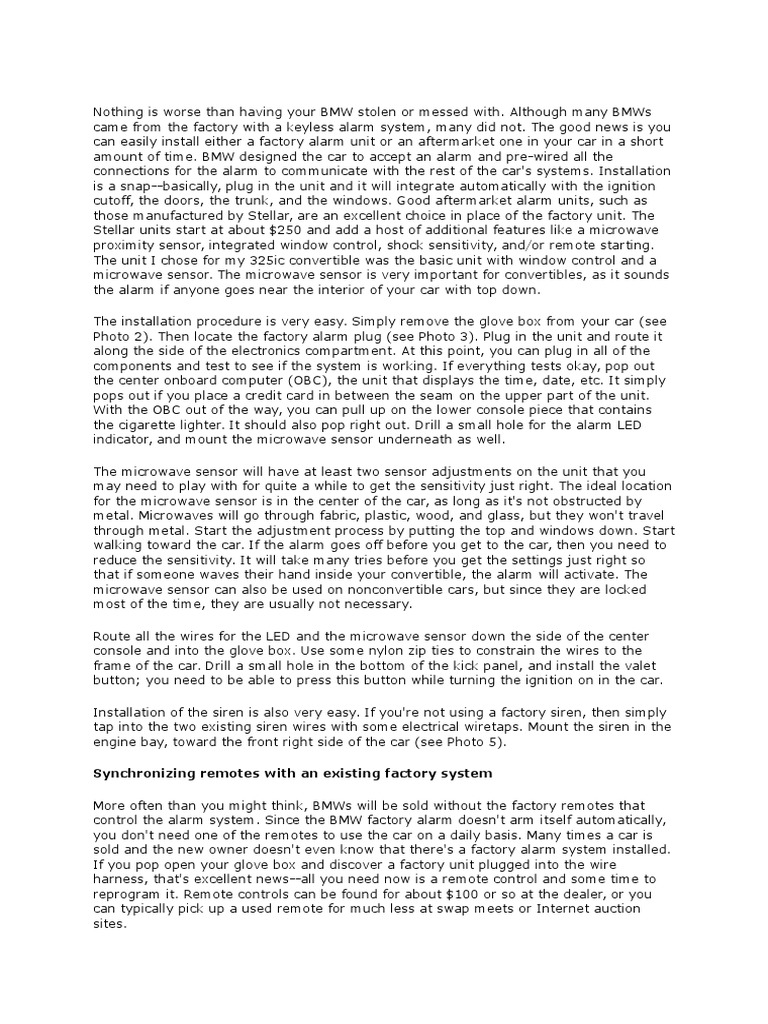 amount of time. BMW designed the car to accept an alarm and pre-wired all the