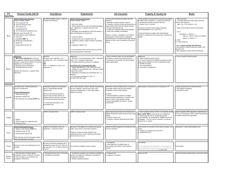 IPS Pension Funds (Def B) Foundations Endowments Life Insurance Property & Casulty Ins Banks